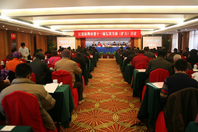 1月18日上午,民建杭州市第十一屆委員會第七次全體(擴大)會議在海華滿隴酒店隆重召開。杭州市副市長、民建市委會主委陳小平,原市委會主委蔣福弟,市委會副主委郭清曄、薛滔菁、徐土松、吳忠泉及民建市委委員、人大代表、政協委員、建德市委會、各城區總支、各市屬支部等120余人參加了會議。中共杭州市委統戰部副部長楊志剛、黨派處處長魯時榮、調研員徐辛沛應邀參加了大會。會議由郭清曄副主委、徐土松副主委分別主持。