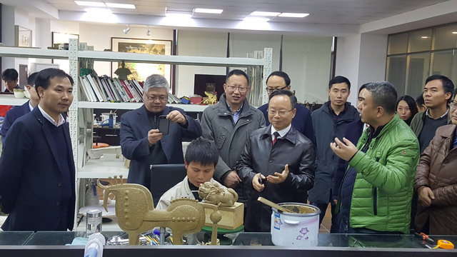 11月30日上午,陳小平一行首先走訪了建德市璽匠文創股份有限公司的銅師傅創作工作室,參觀師傅們的現場制作和作品展覽室。后又來到梅城古鎮,調研古鎮文化傳承、保護和開發等方面的問題,并與建德市政府、文創辦等相關管理部門負責人進行了現場交流。