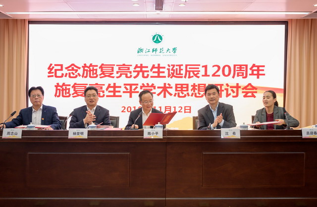 11月12日下午,在施復亮誕辰120周年之際,施復亮生平學術思想研討會在浙江師范大學行政中心召開。省政協副主席、民建省委會主委陳小平出席并講話。浙江師范大學黨委副書記沈希致歡迎詞。金華市政協副主席、民建金華市委會主委楊堅明主持。浙師大黨委委員、組織部部長、統戰部部長呂迎春,馬克思主義學院院長周志山,民建省委會秘書長高波等出席研討會。來自各地的50多位專家學者參加會議。