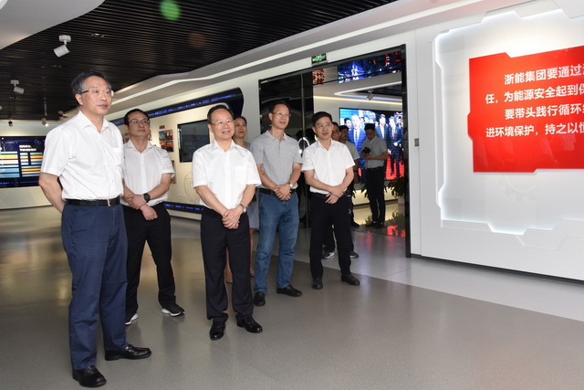 陳小平一行首先來到“新浙能”展廳,觀看了習近平總書記歷次考察浙能集團的珍貴影像資料,了解浙能集團在“大能源戰略”下“能源立業、科技興業、金融富業、海外創業”的“四業”發展路徑和歷程。在模型展示區,重點駐足了解氫能、區域綜合能源、數字浙能等相關情況,對于能源領域最新技術等進行深入了解,對浙能集團在近年來的轉型升級高質量發展成效表示贊賞。